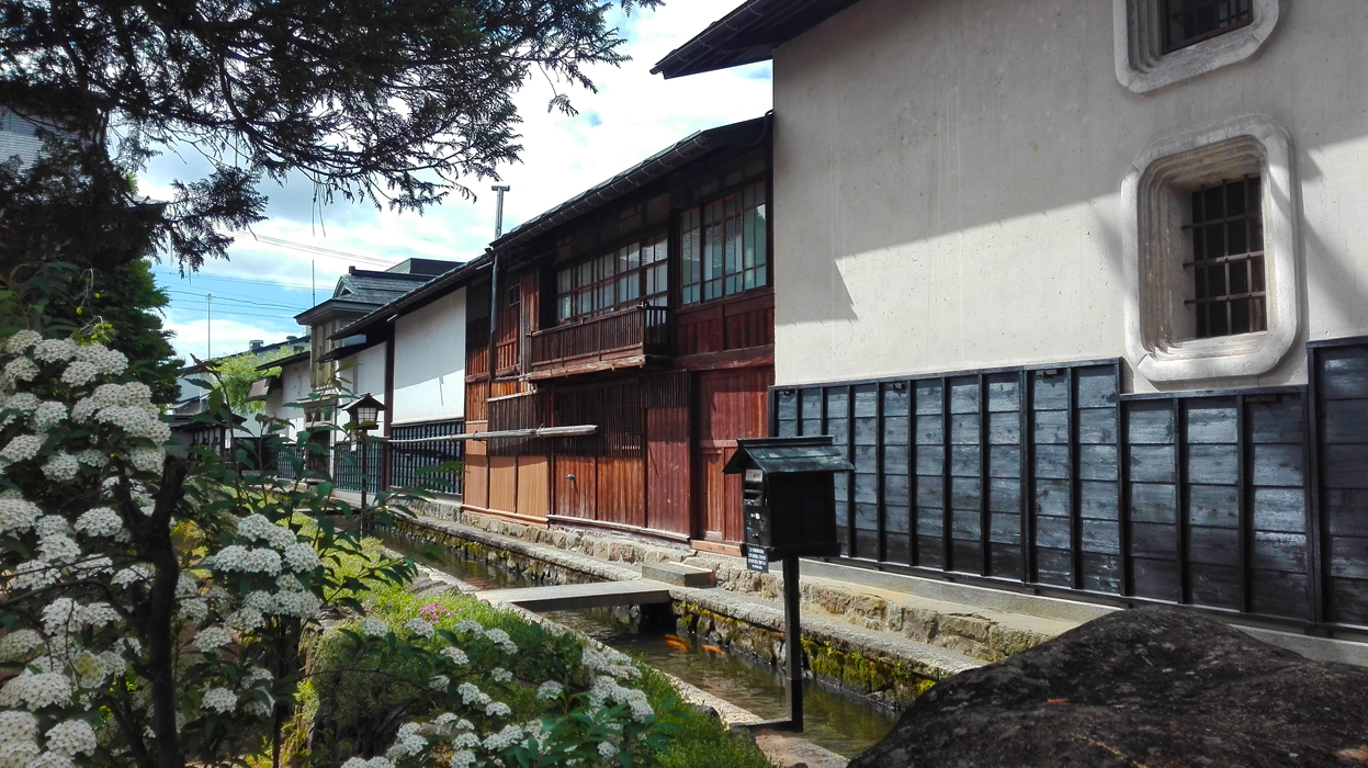 Kaupungin vanha keskusta on Takayamaa paljon rauhallisempi. Sen erikoisuus on kapea kanaali, joka juoksee vieri viereen rakennettujen talojen ja kadun välissä. Kanaalin vesi on kristallin kirkasta, ja siinä uiskentelee värikkäitä karppeja! Saavuimme kaupunkiin aamuvarhaisella, eivätkä kaupat olleet vielä auki, joten keskusta tuntui aivan erityisen seesteiseltä.
