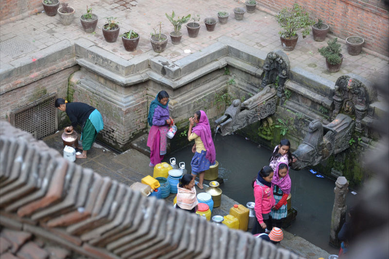 Naiset peseytyvät Durbar-aukion vieressä.