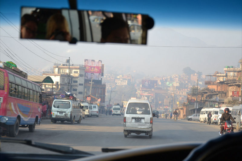 Nautittuamme runsaan hotelliaamiaisen keräsimme kamppeet ja tapasimme oppaamme Bishnun sekä kaksi kantajaamme hotellin aulassa. Hieno Land Cruiser odotti meitä oven edessä, ja sullouduimme tavaroinemme sisään. Pääsimme lähtemään tasan klo 8.00. Matkaan oli arvioitu kuluvan 8 tuntia.