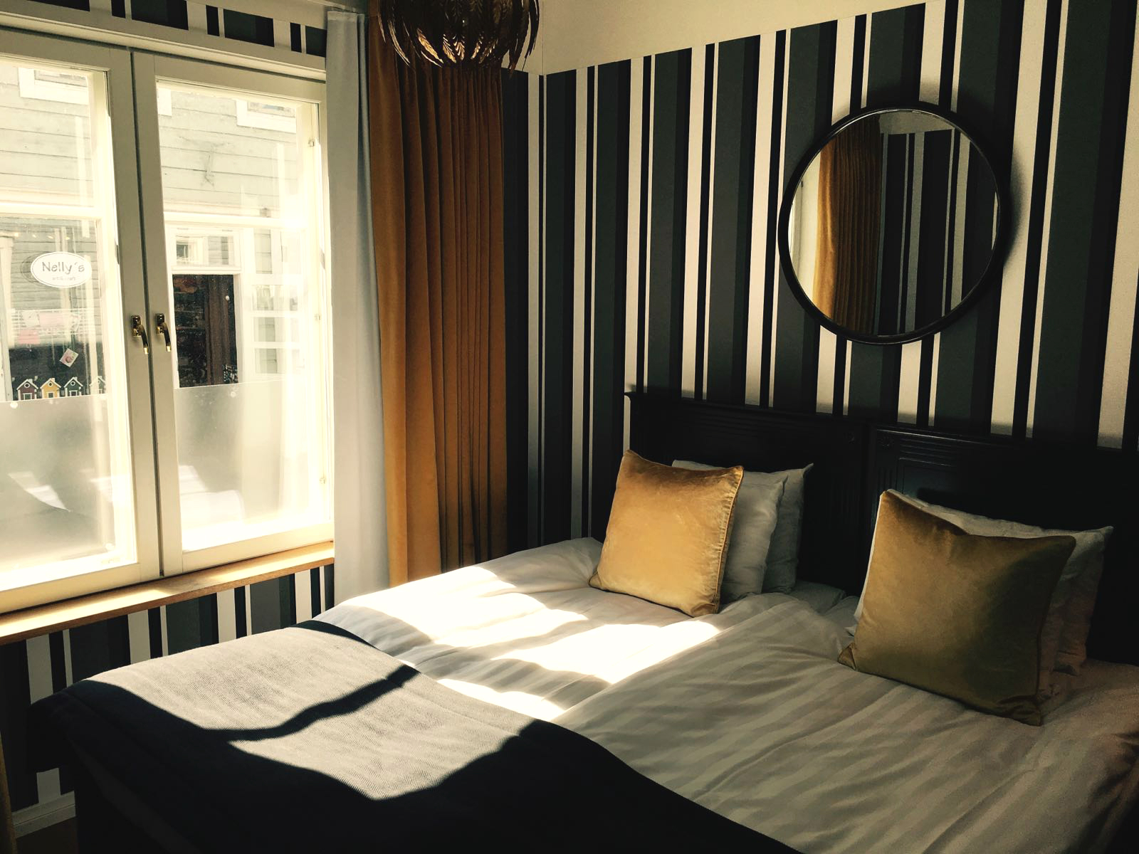 Erityisen vaikutuksen teki hotellivierailuni kohokohta, aamiainen. Kevein sävyin sisustetussa aamiaishuoneessa oli tarjolla lähiyritysten, kuten lihapuoti HEREK:in ja Huovilan leipomon tuotteita, hitaasti haudutettua puuroa, suklaakakkusia, raikasta raparperimehua ja hyvää kahvia – tietysti Porvoon paahtimolta. Ylellinen hemmottelija voi tilata myös huoneeseen tarjoiltavan samppanja-aamiaisen suklaaherkkujen kera (65€ kahdelle).